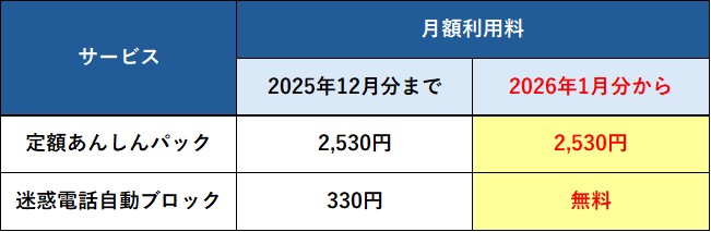 (2026年1月ご利用分から、迷惑電話自動ブロックの月額利用料は自動的に無料となります)